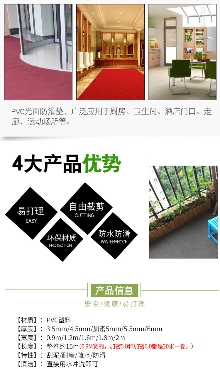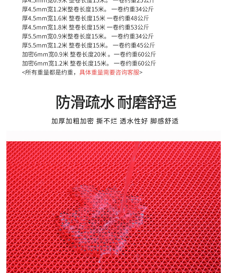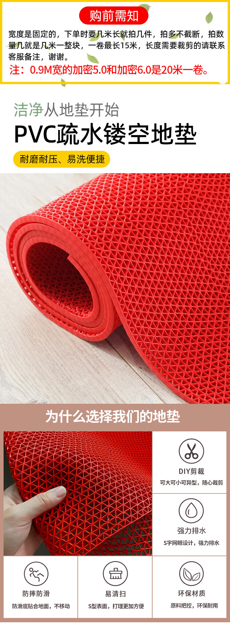 冰禹 S形镂空防滑垫 BYyc-374 PVC 宽1.2m*1m(厚5mm) 红色 1米