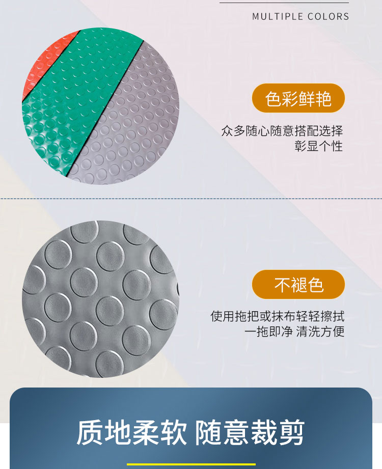 冰禹 塑料防滑垫 BYyc-401 PVC 铜钱纹1.3m宽【牛津普厚】 红色 1米