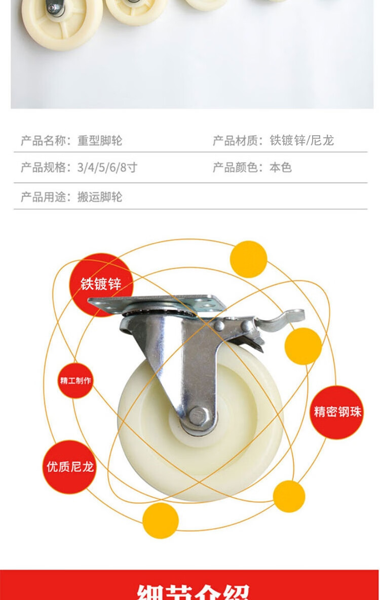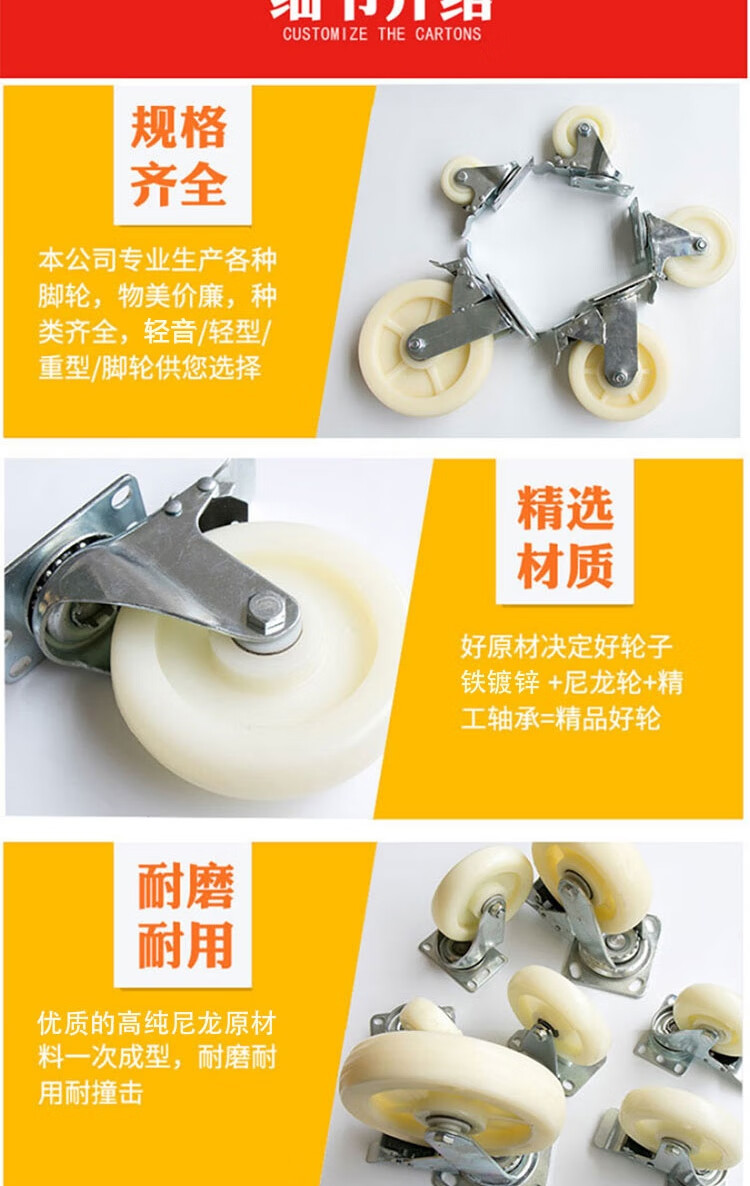 冰禹 加厚推车脚轮 BH-106 尼龙 4寸 轻型定向 1个