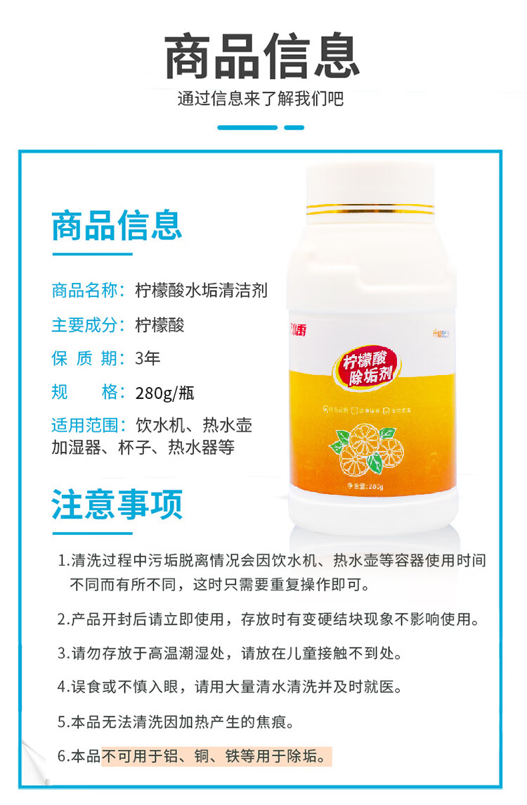 冰禹 柠檬酸除垢剂 BYQ-895 280g 2瓶 1件