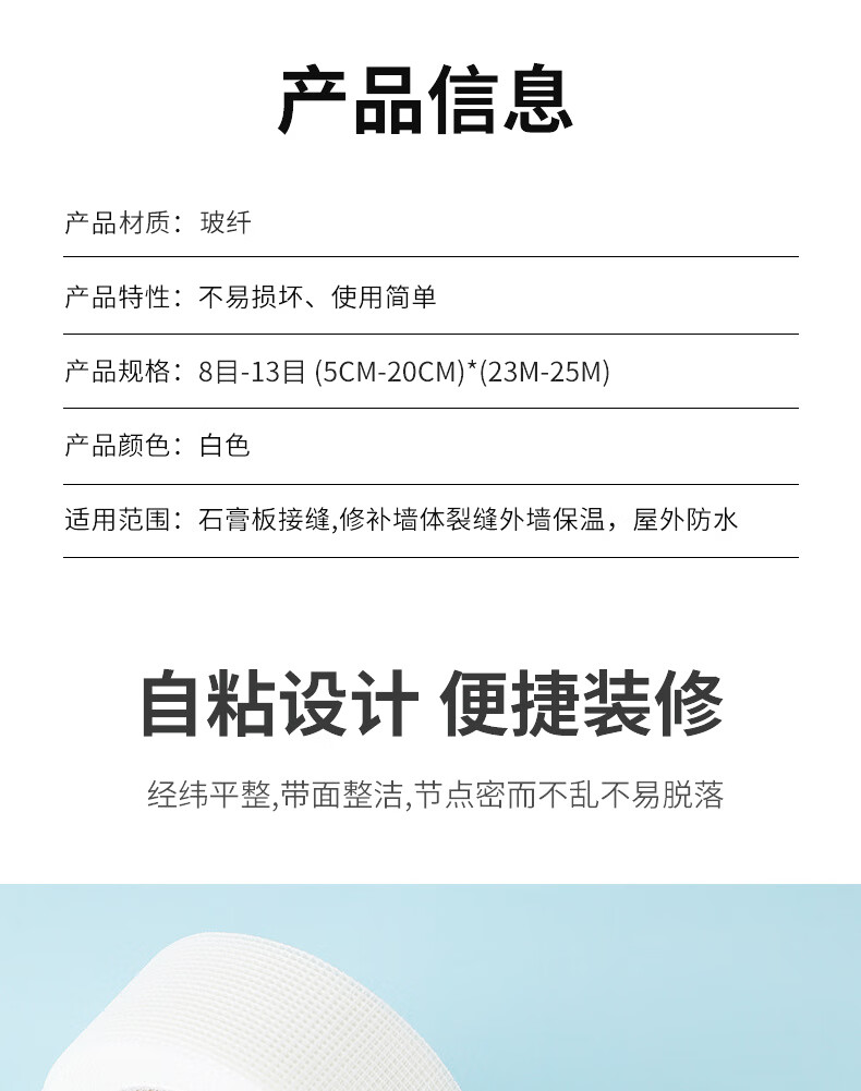 冰禹 自粘型网格带 BYK-325 玻纤 8目10cm*23m 白色 4卷 1组