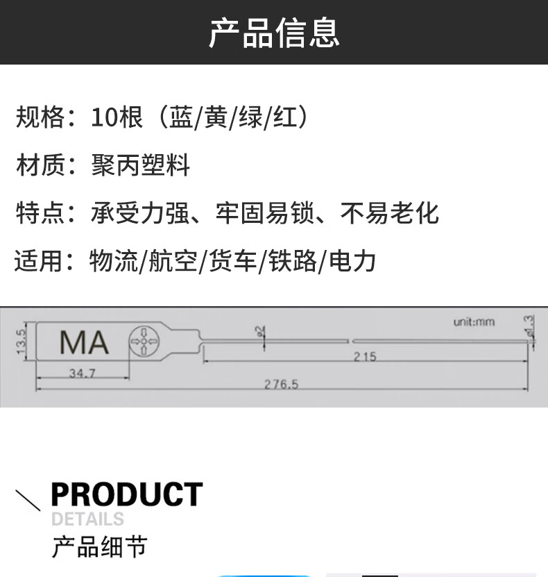冰禹 一次性塑料封条 BYK-348 聚丙塑料 黄色 10根 1件