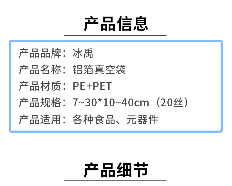 冰禹 铝箔真空袋 BYK-361 25*35CM*20丝 100个 1包