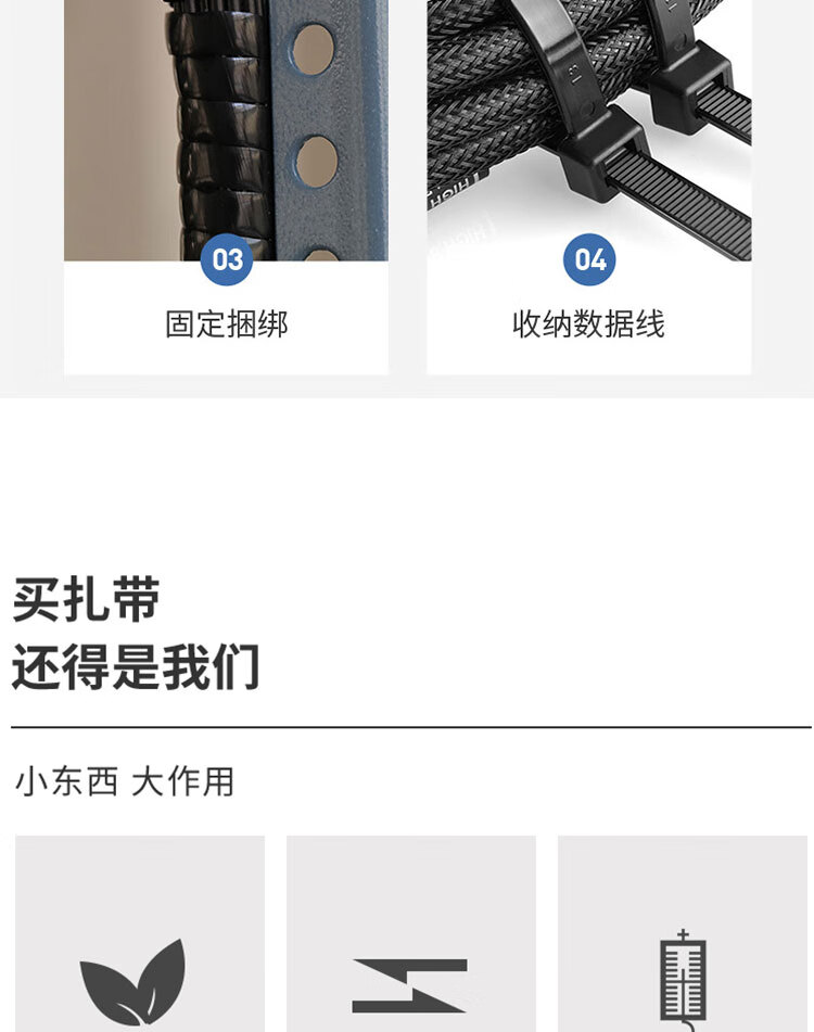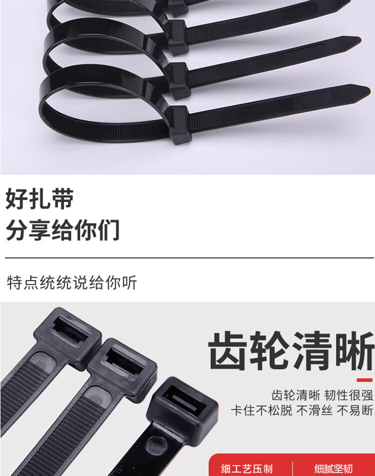 冰禹 国标自锁式尼龙扎带 BYT-165 尼龙新料 4.8mm*200mm 50条 1件