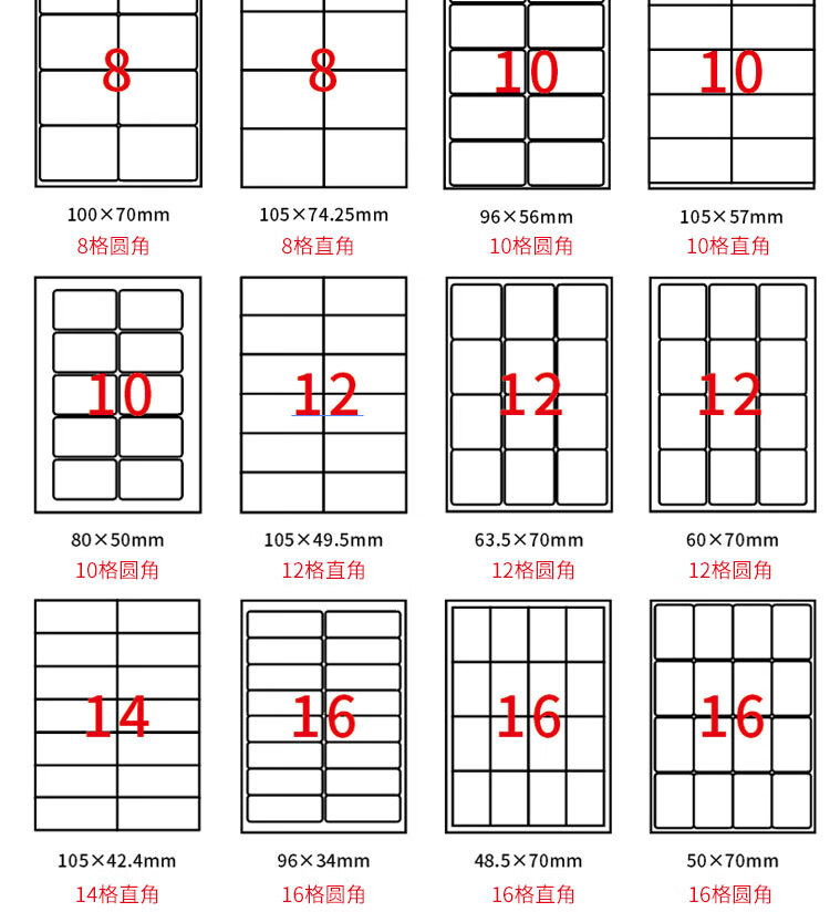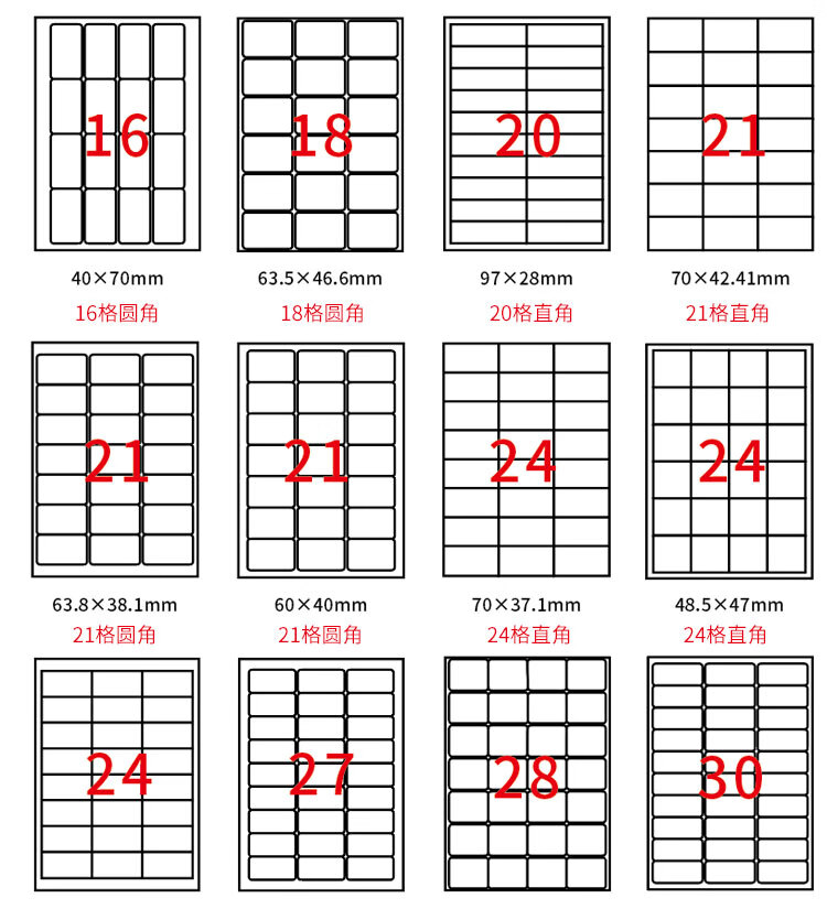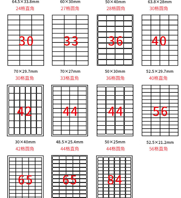 冰禹 亚光a4不干胶标签纸 BYT-181 木浆 圆角 36格50*30mm 80张 1包