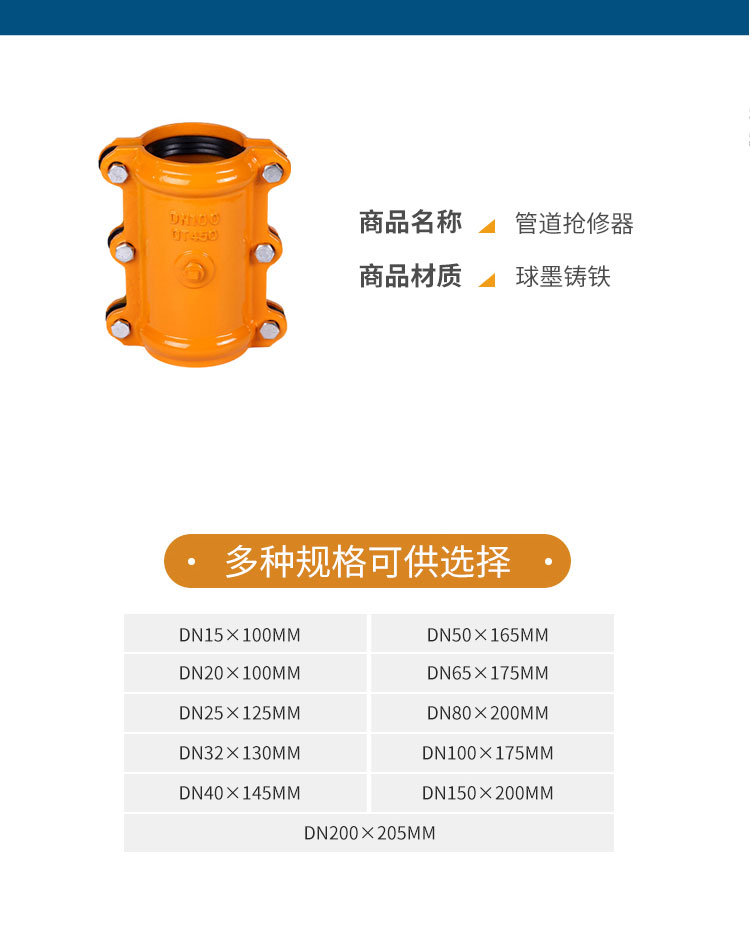 冰禹 直管哈夫节 BJjj-126 DN100*260mm 球墨铸铁 管道补漏 1个