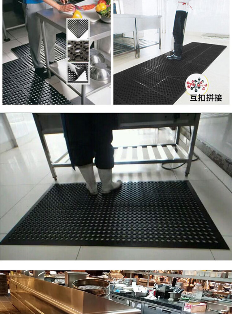 海斯迪克 厨房防滑地垫 gny-606 橡胶 黑色 厚12mm 60*90拼接型 1块
