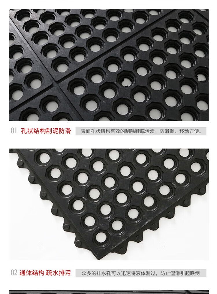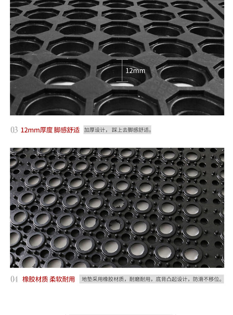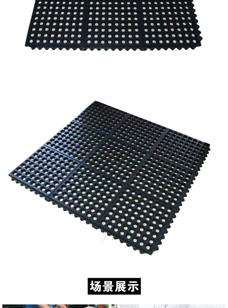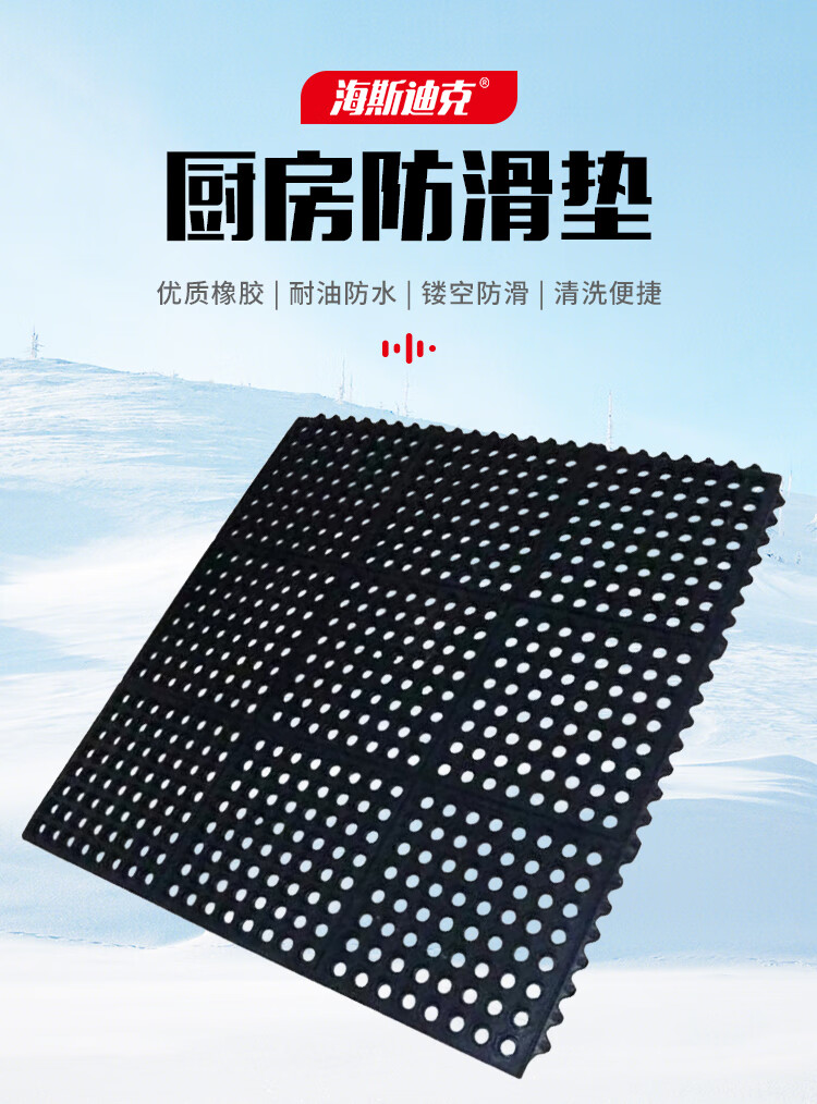 海斯迪克 厨房防滑地垫 gny-606 橡胶 黑色 厚12mm 93*93拼接型 1块