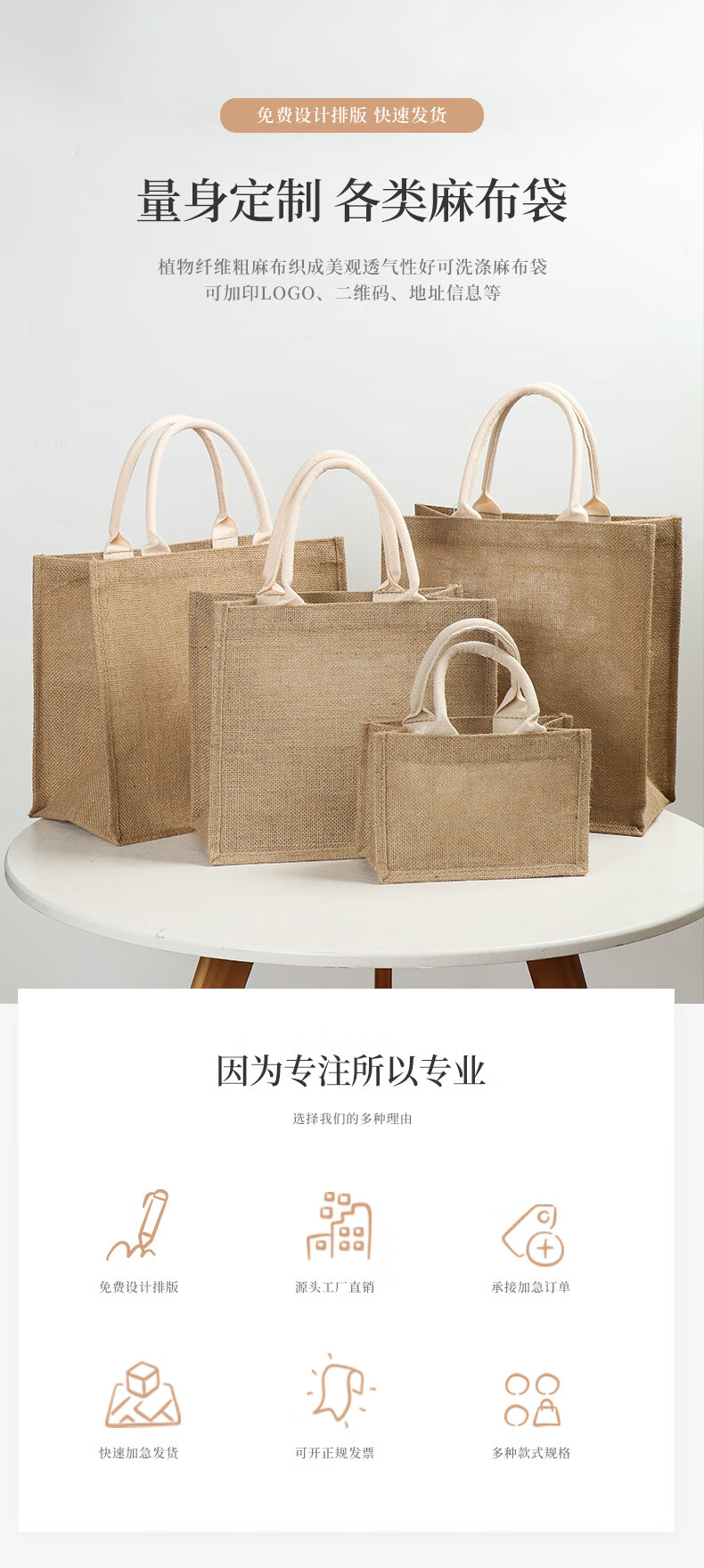 海斯迪克 黄麻手提袋 hs-160 中号25*18*25cm 1个