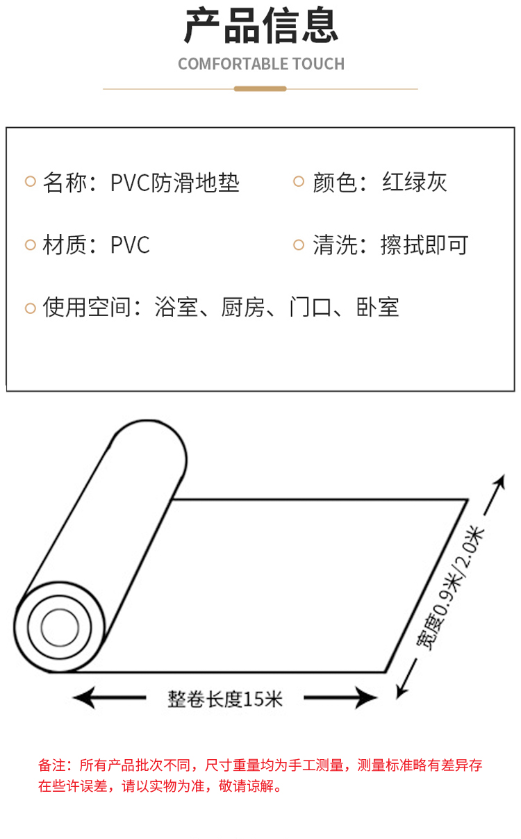 海斯迪克 防滑垫 HKY-174 PVC 1.8米宽*1米 红色 1卷