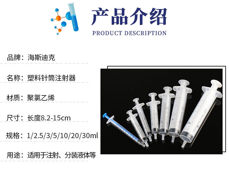 海斯迪克 一次性注射器 hsdk-115 聚氯乙烯 5ml 90mm 100个 1包