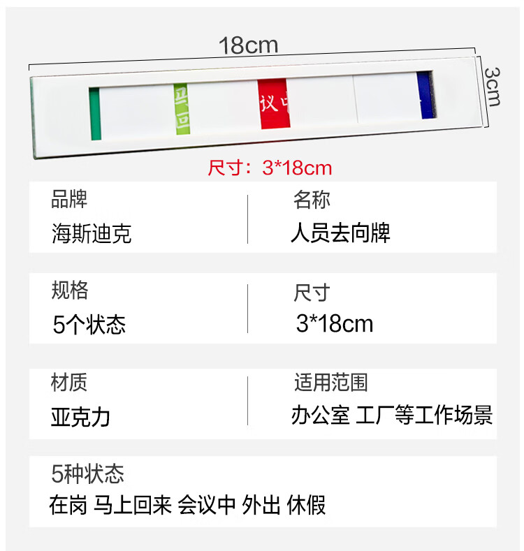 海斯迪克 亚克力员工岗位去向牌 gny-571 员工岗位去向牌 3*18cm 1个