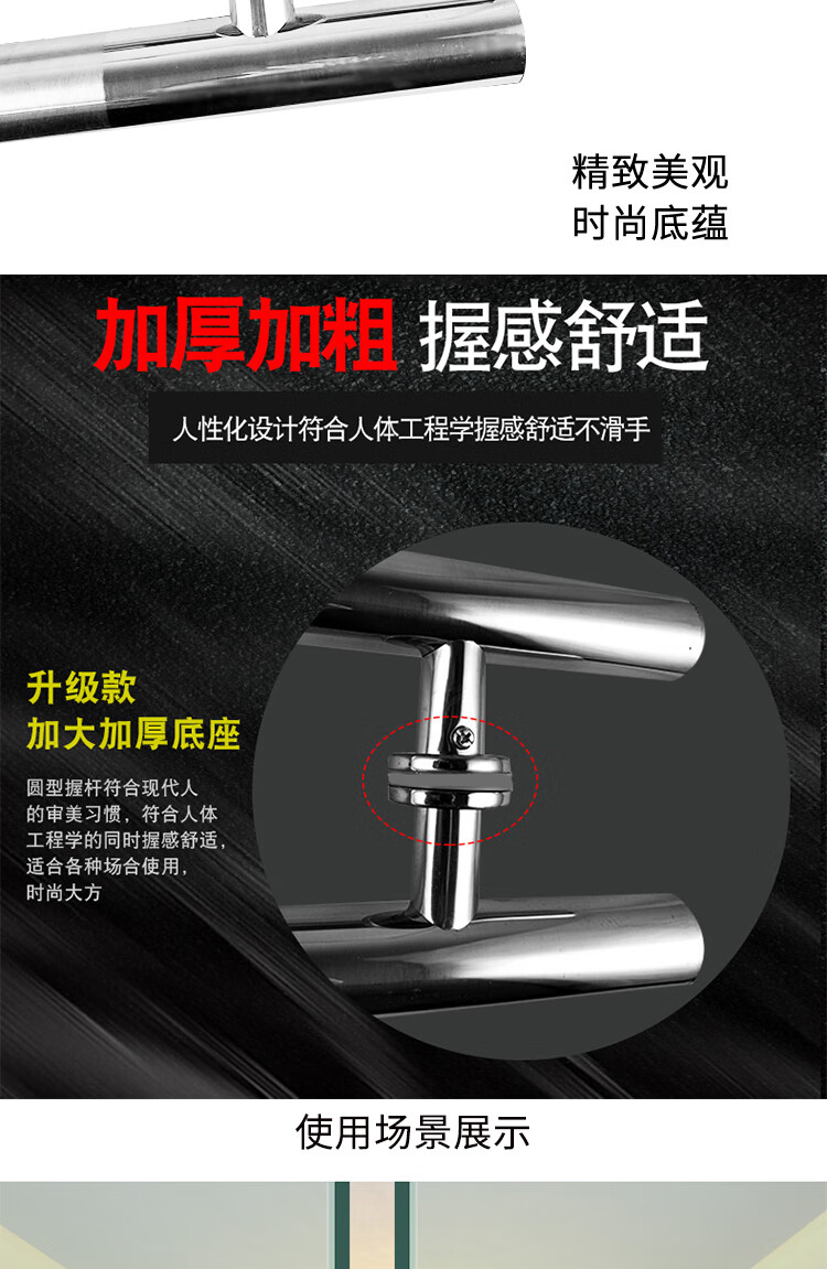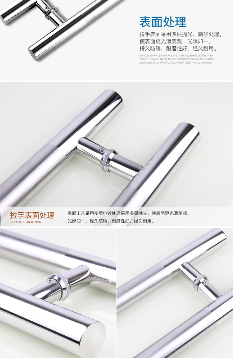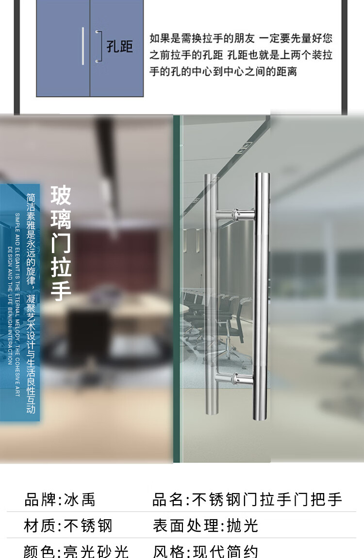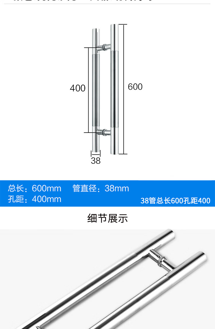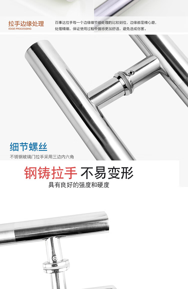 冰禹 玻璃门拉手 BYJZ-1432 不锈钢 加厚38管总长600孔距400 1个