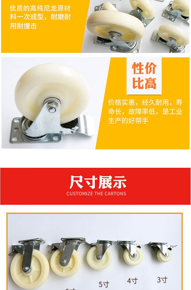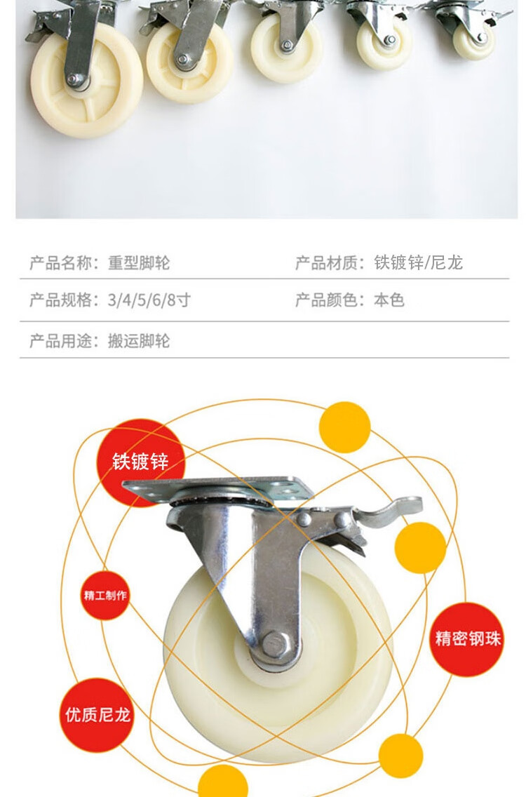 冰禹 加厚工业脚轮 BJjj-59 尼龙 4寸重型万向轮 1个