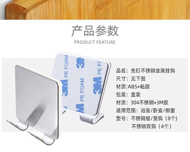 不锈钢宽钩 8个盒装