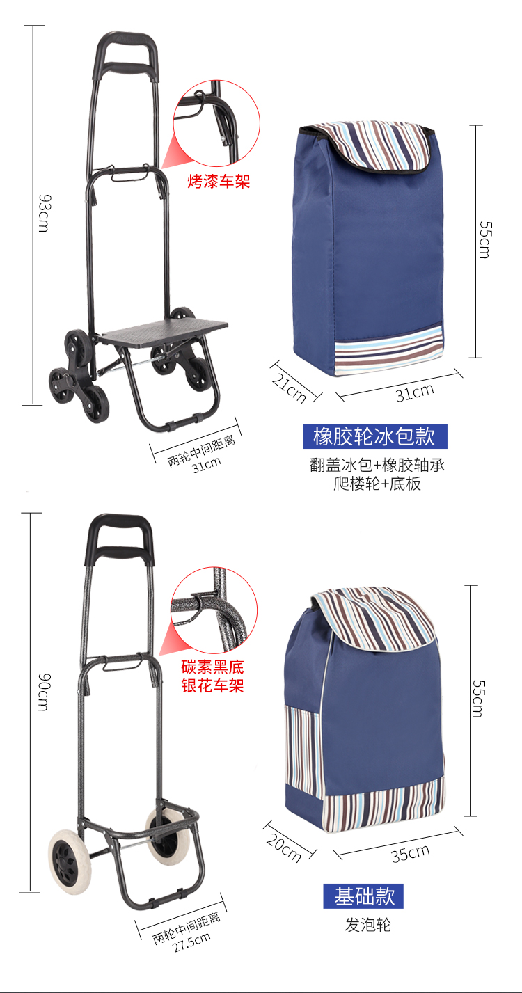 冰禹 超市买菜车拉杆车 BYA-236 基础款 藏青 1辆