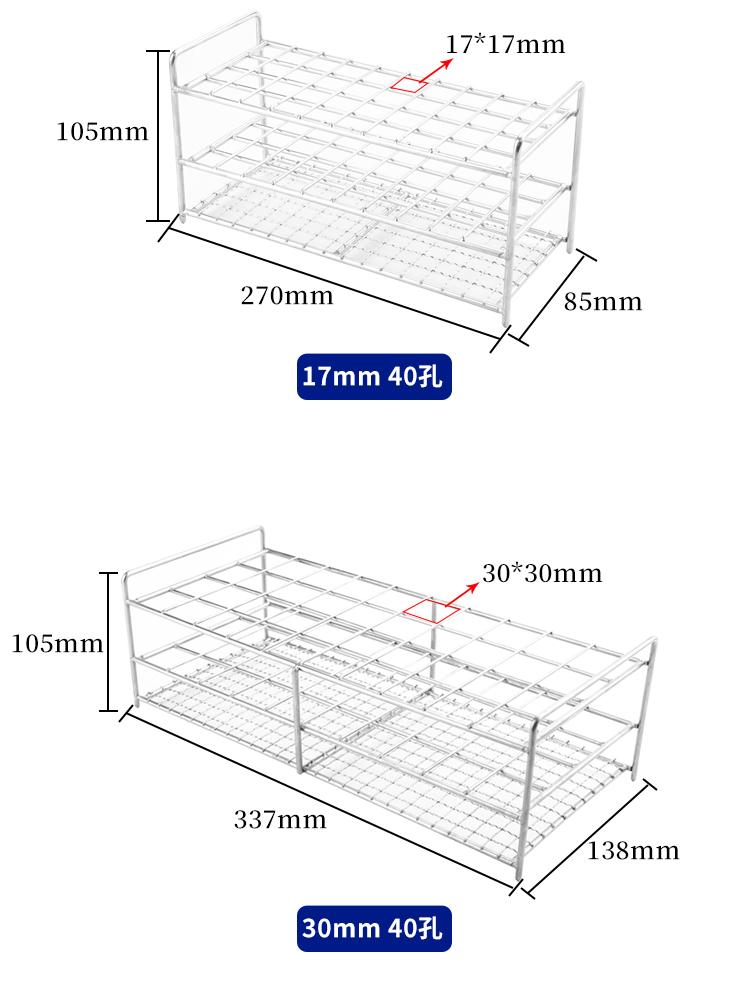 海斯迪克 不锈钢试管架 HKCL-456 17mm 40孔 1个