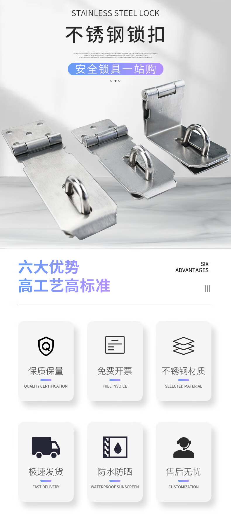 冰禹 不锈钢锁扣 BYyn-474 4寸90度搭扣配挂锁 1个