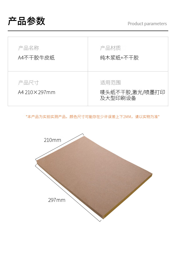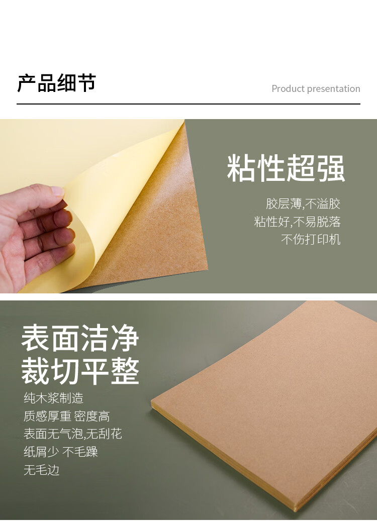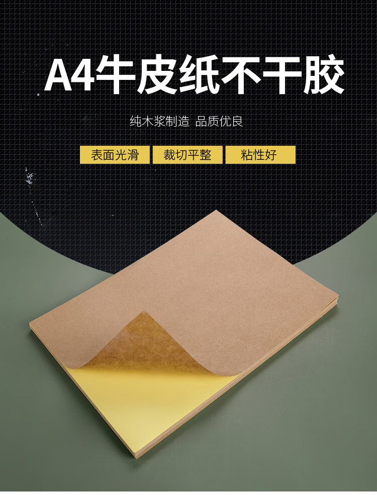 海斯迪克 牛皮纸不干胶 HKQL-80 纯木浆纸+不干胶 A4 1000张 1包
