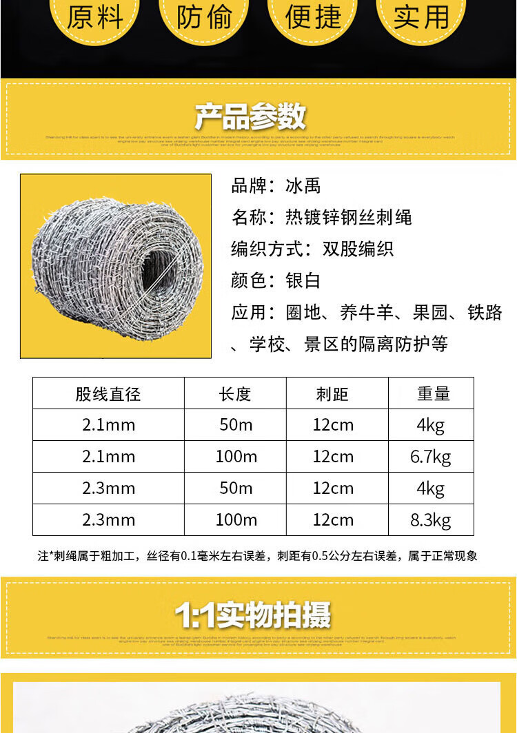 冰禹 刺绳铁丝网 BYyn-357 铁丝 2.3mm×200m 12cm 1捆