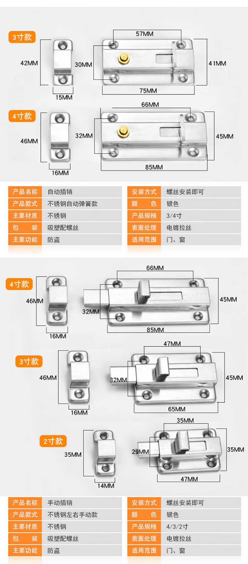 • 规格手动双向款2寸