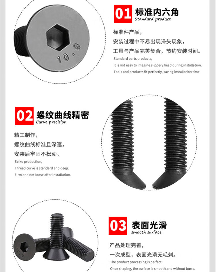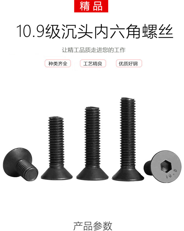 冰禹 沉头内六角螺丝钉 BJyl-35 10.9级 碳钢(发黑) M5×12 200个 1包
