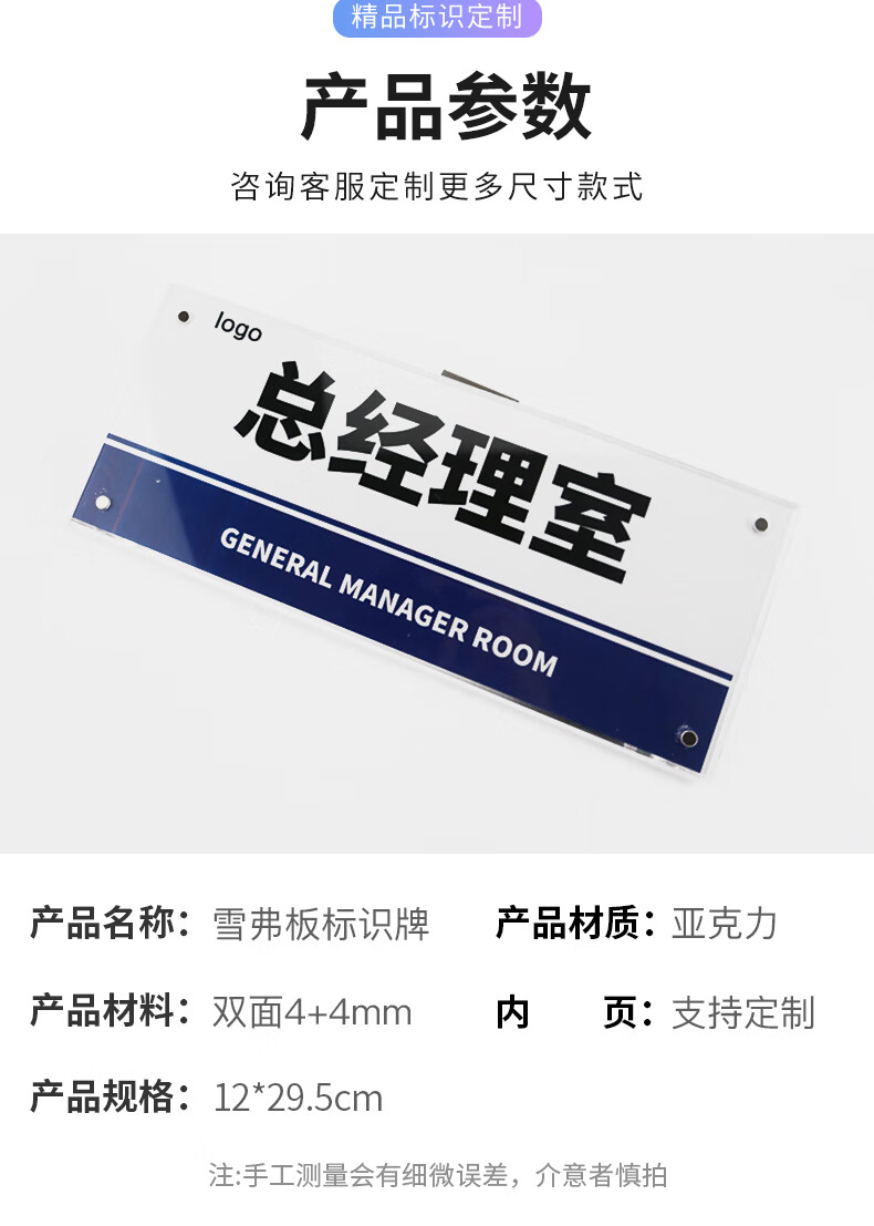 冰禹 磁吸亚克力科室牌 BYyn-465 市场营销部 12*29.5CM 1个