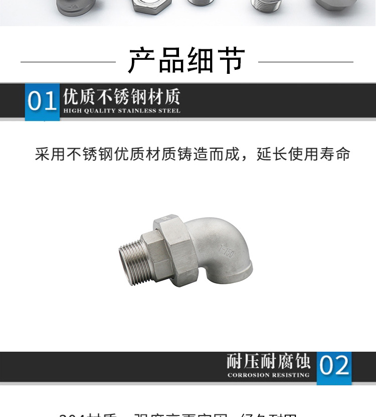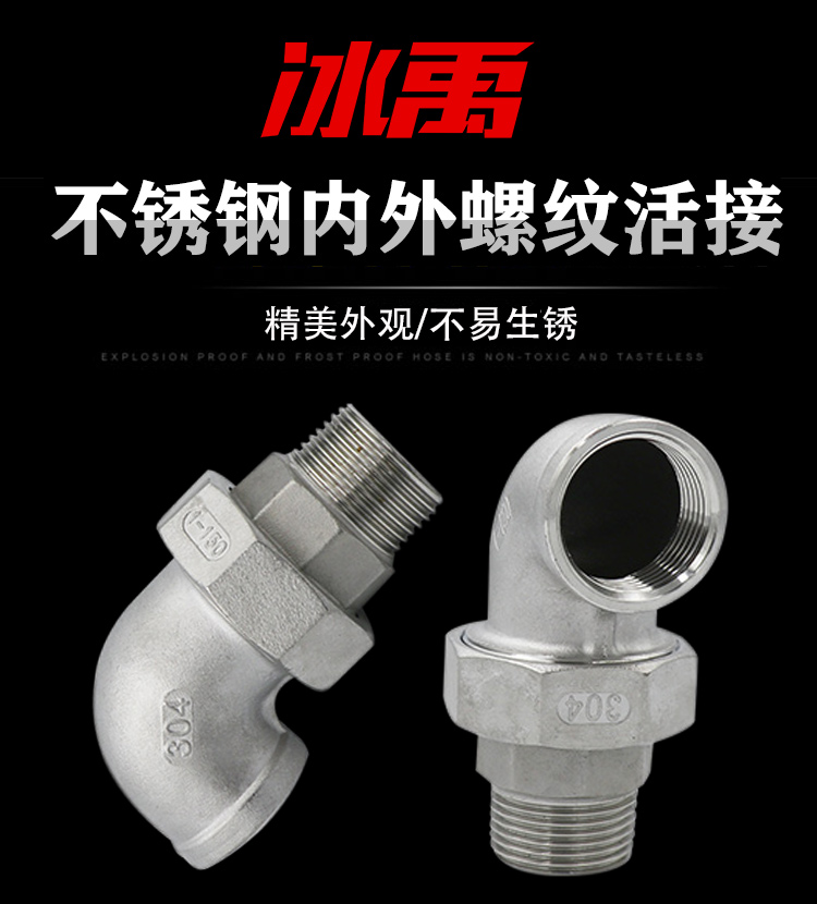 冰禹 不锈钢内外牙活接弯头 AB02861 304不锈钢 DN25-1 1个