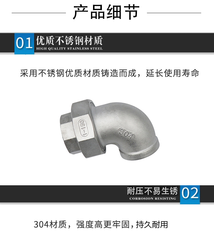 • 商品名称:冰禹 不锈钢(内牙)活接弯头