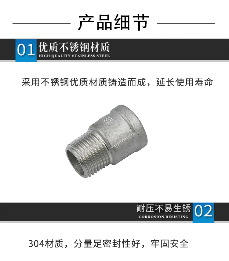冰禹 不锈钢内外丝扣 AB03141 304不锈钢 DN25-1 1个