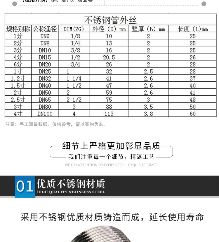 冰禹 不锈钢单头管子丝 AB05471 304不锈钢 DN32 1个