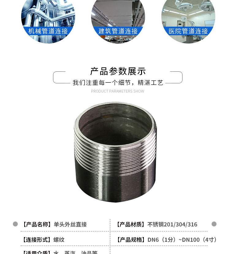 冰禹 不锈钢单头管子丝 AB05481 304不锈钢 DN40 1个