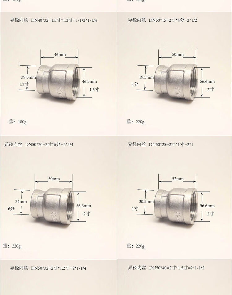 冰禹 异径内丝大小头接头 AB04021 304不锈钢 3/4×1/4 1个