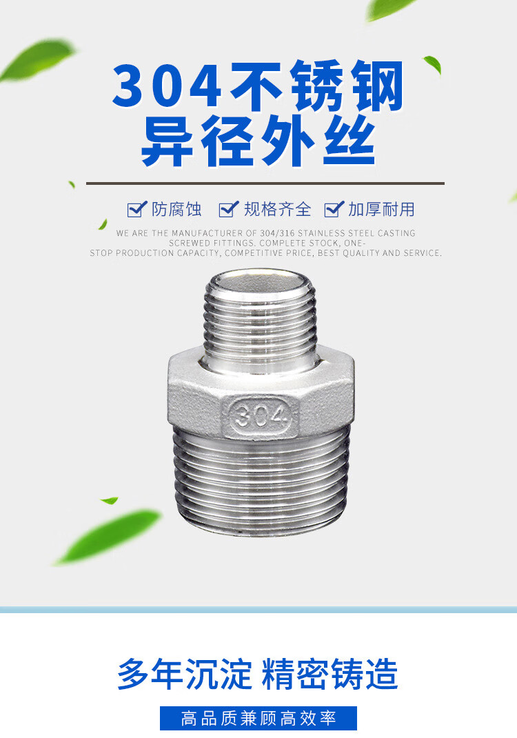 冰禹 不锈钢异径外丝直接 AB04291 304不锈钢 1×1/2(1寸变4分) 1个