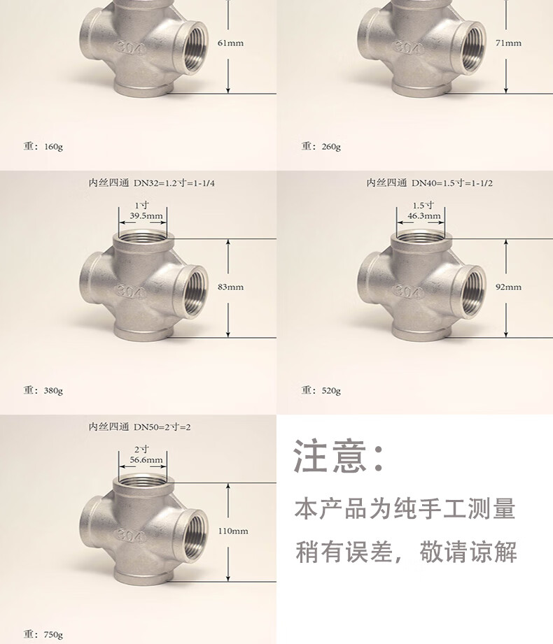 冰禹 不锈钢四通 AB02141 304不锈钢 DN15-1/2 1个