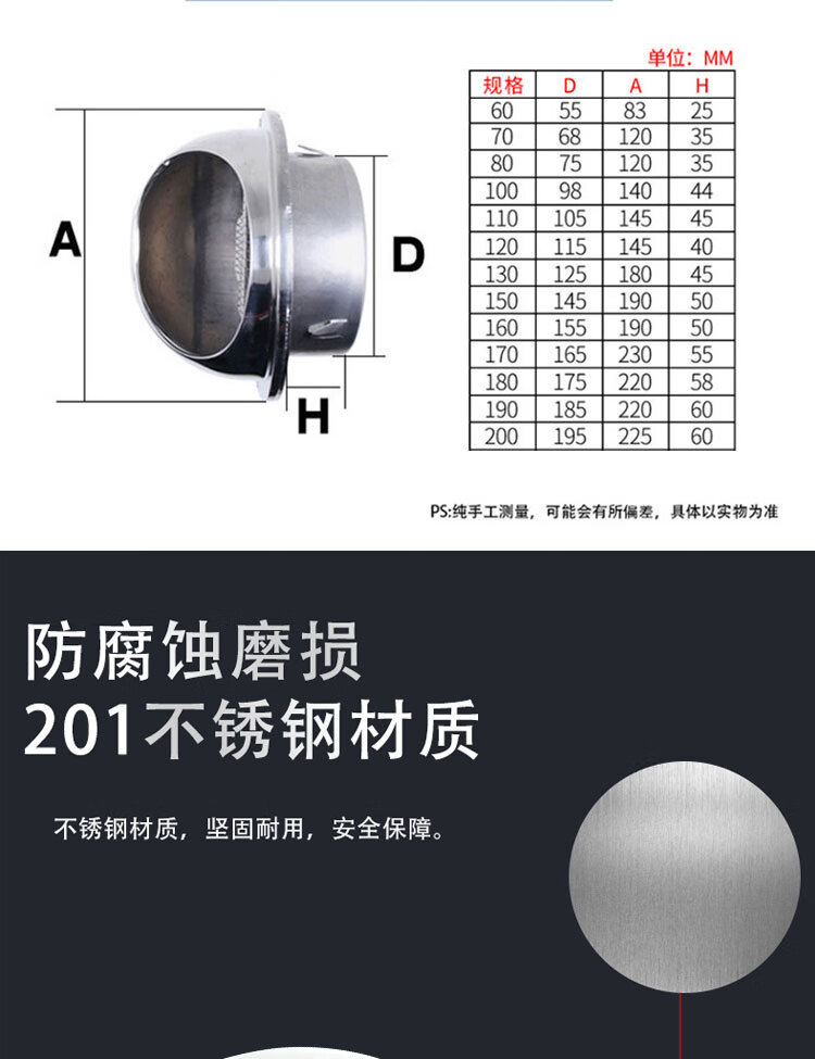 冰禹 不锈钢防雨防风帽 BYyc-253 201款抛光加厚 80mm 1个