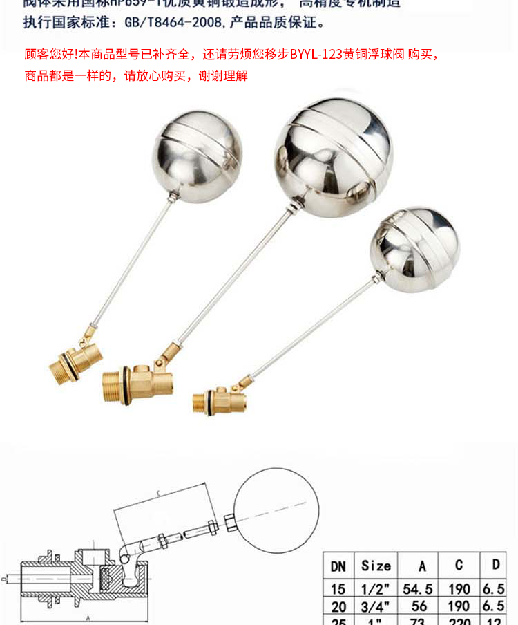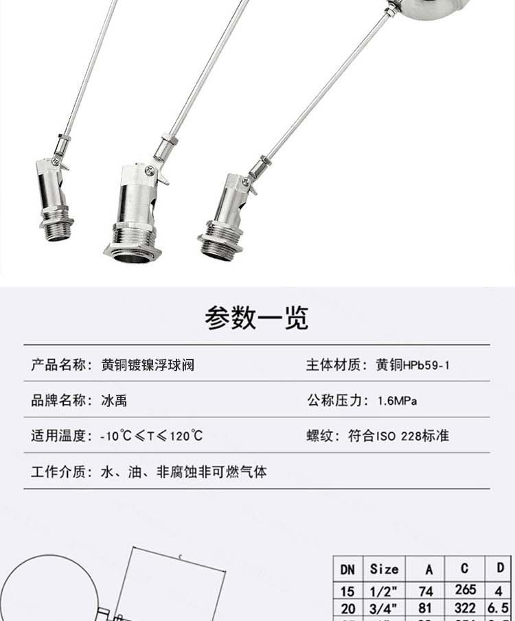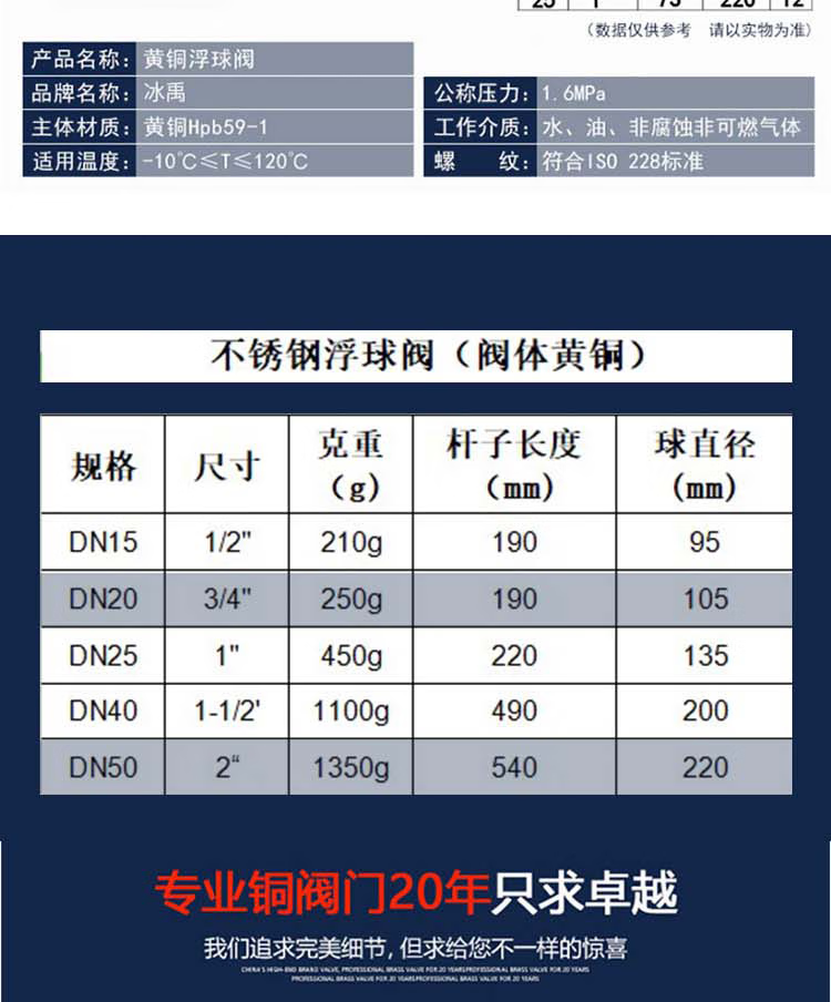 冰禹 黄铜浮球阀 BYJZ-1314 HPb59-1 DN65 2.5寸 1个