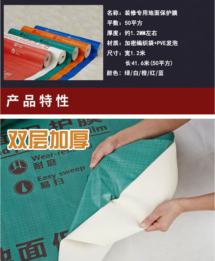 冰禹 地面保护膜 Bj100 橙色 加密50平米 1.2×41.6m 1卷