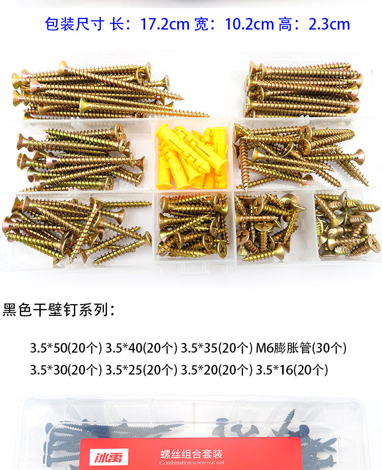 冰禹 墙板自攻螺钉组合装 BJY-80 黑色干壁钉系列 170个 1组