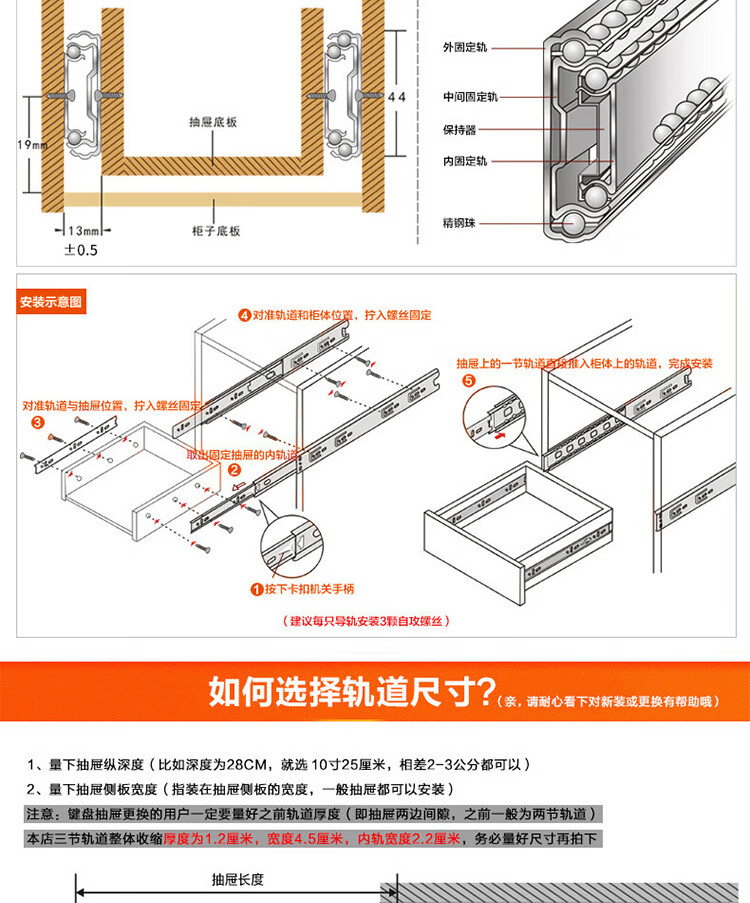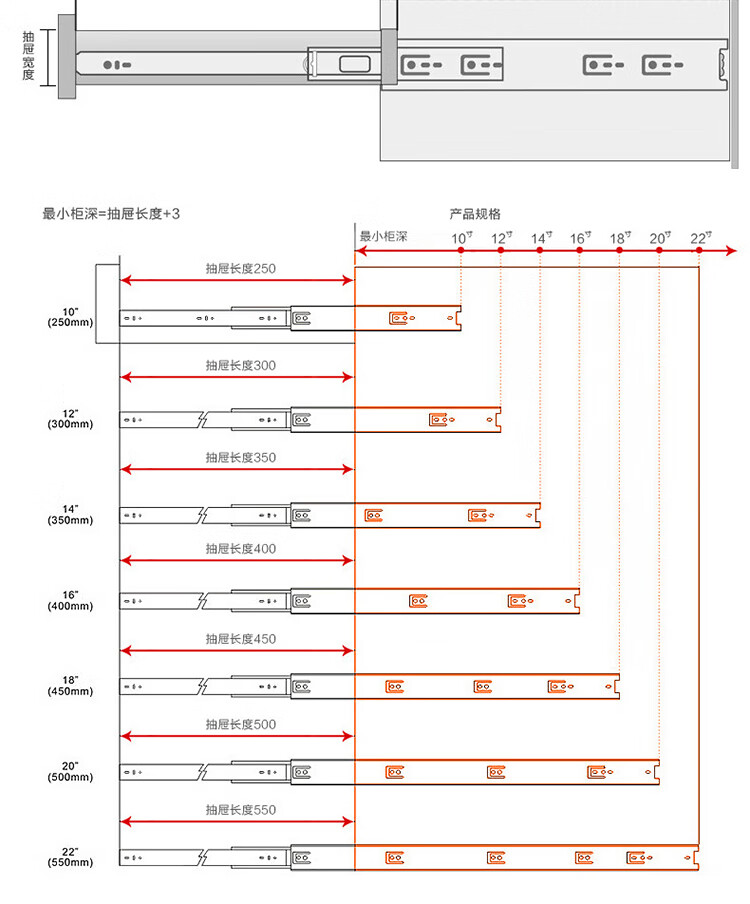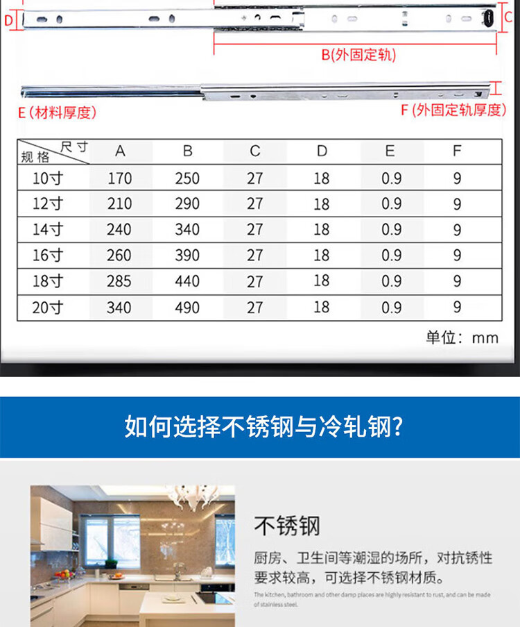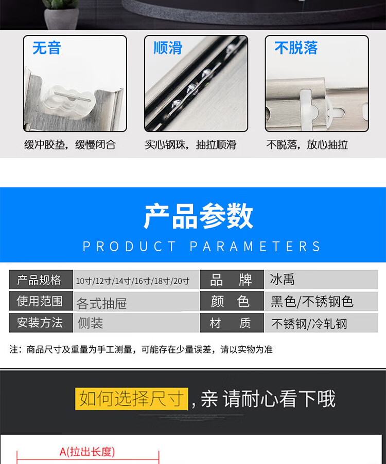 冰禹 抽屉滑轨 BYE-15 不锈钢 14寸(350mm) 1对