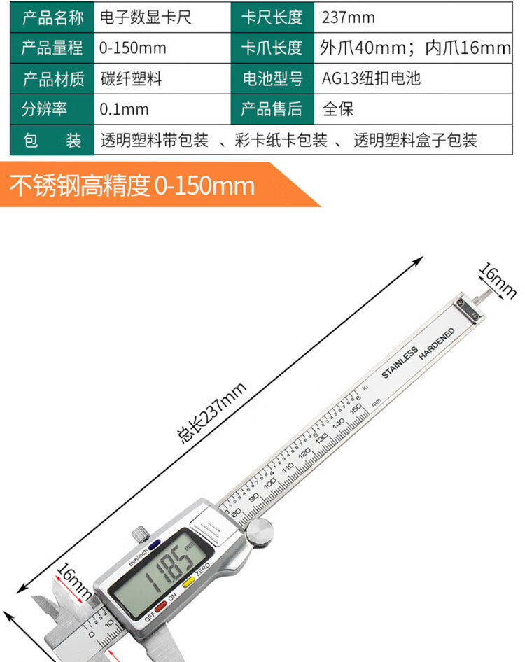 升级款高精度0-150mm(橙黑)
