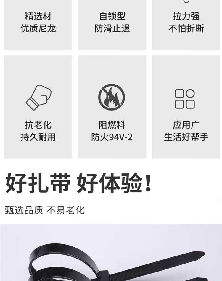冰禹 国标自锁式扎带黑色 BJjj-204 尼龙 3.6mm*150mm 100条 1件