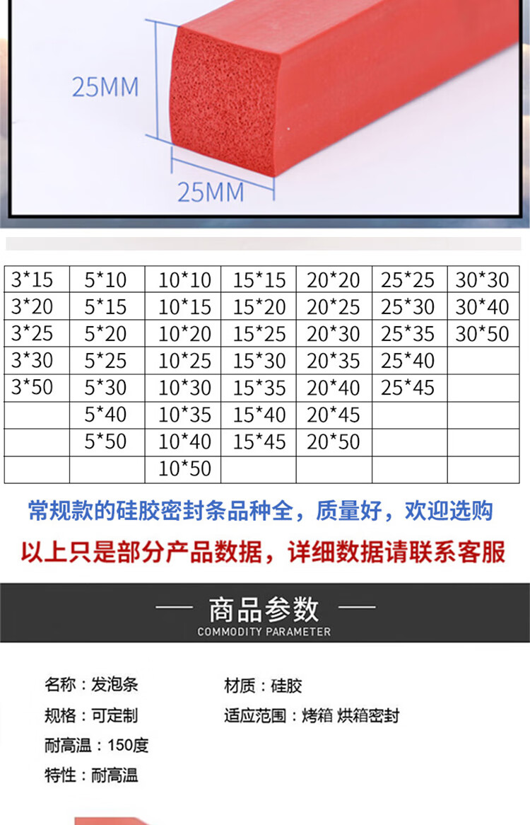 冰禹 耐高温硅胶密封条 BYW-143 15mm*15mm 1米 1条