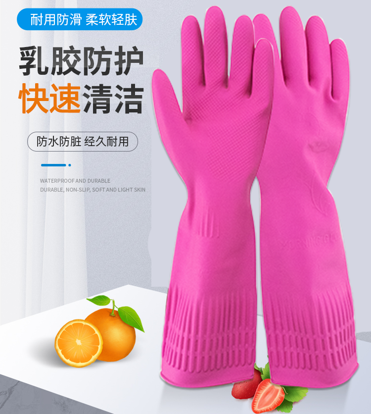 冰禹 乳胶橡胶胶皮防水手套 BJhy-12 粉色 M码 38cm 1双