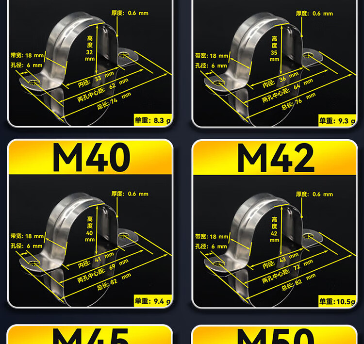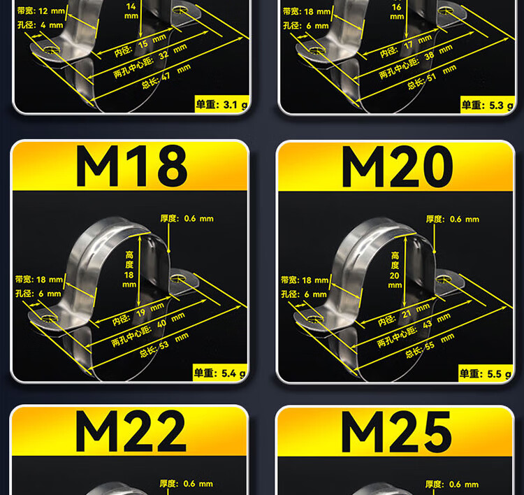 冰禹 不锈钢U型管卡 BYJZ-3022 304不锈钢 27mm 50个 1件
