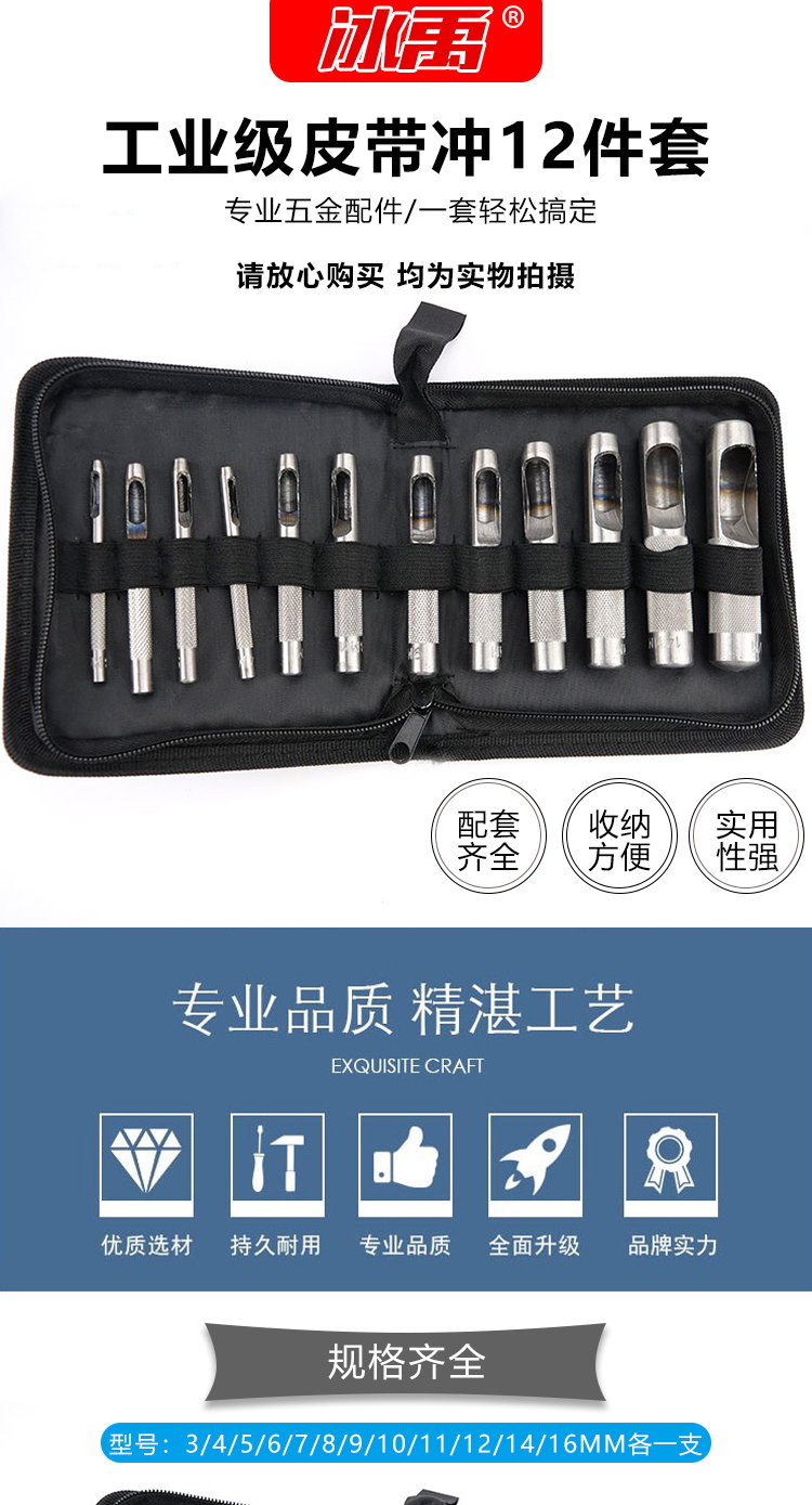 冰禹 皮包眼冲套装 BYJZ-1048 皮带冲12件套 1套