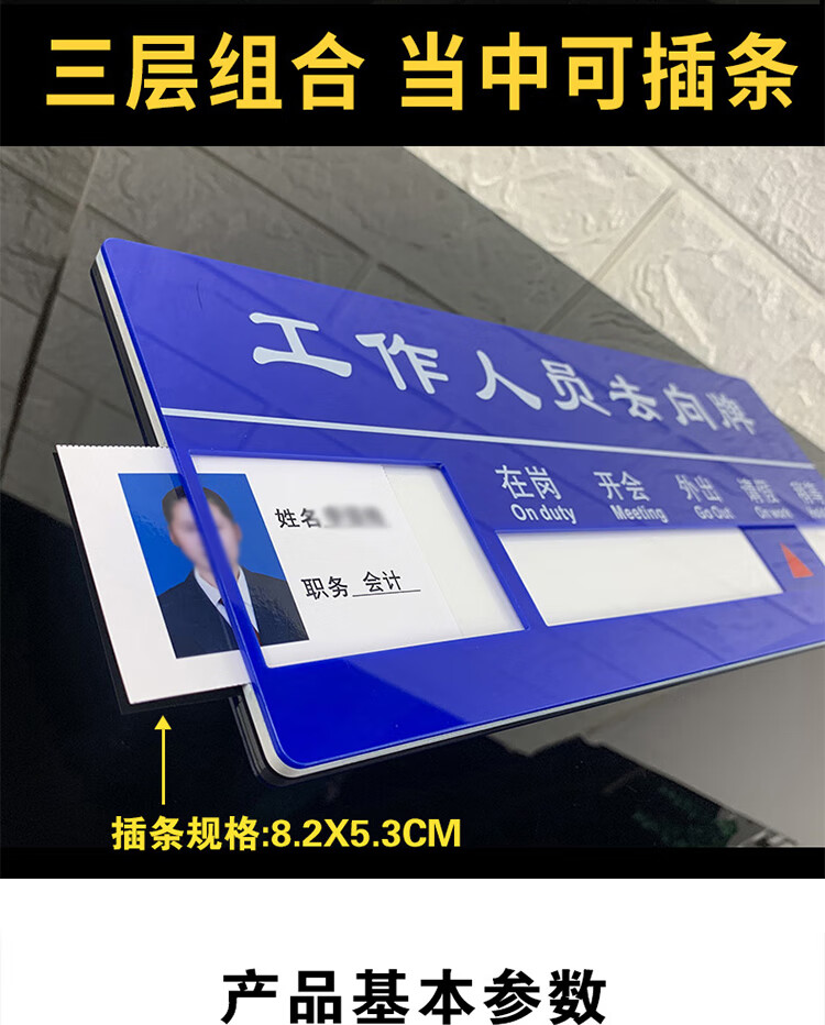 海斯迪克 亚克力人员去向牌 gnjz-7390 三人去向牌 35×27.2cm 1个