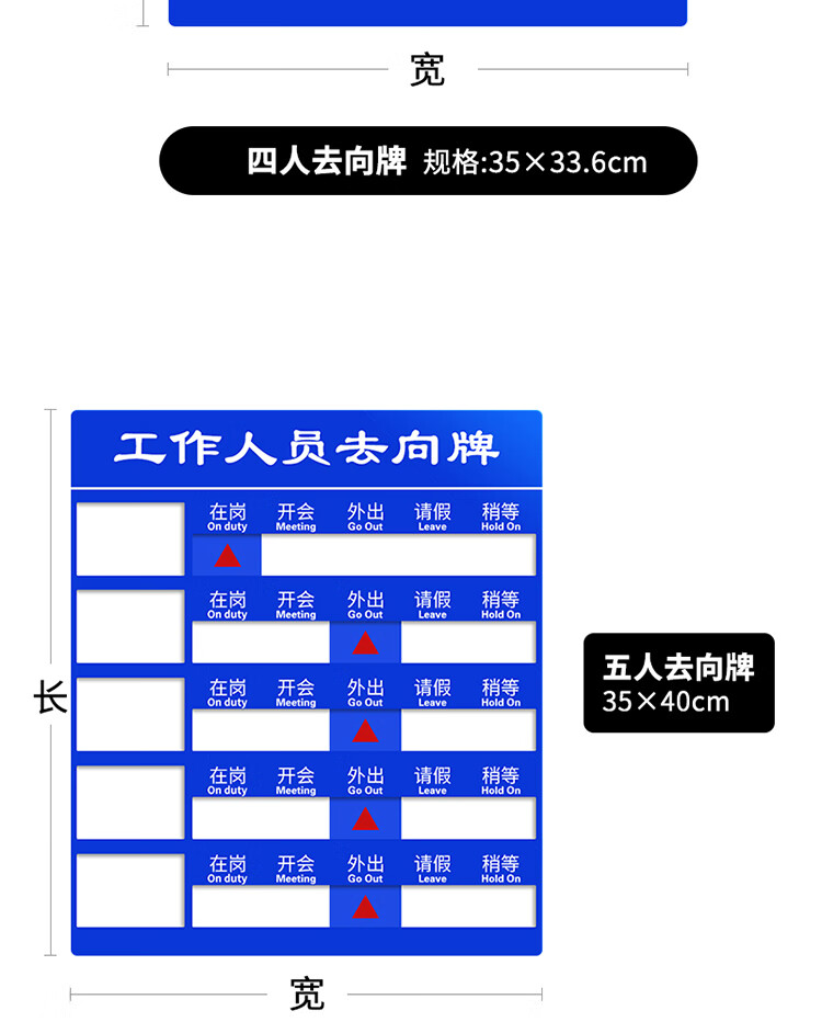 五人去向牌35×40cm(1个)
