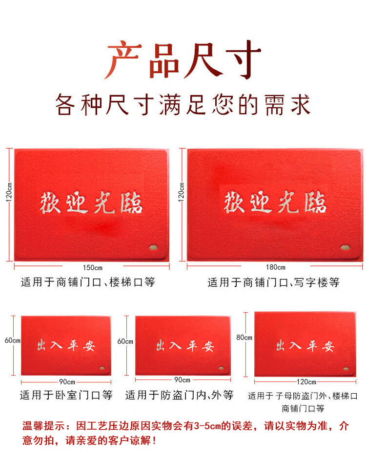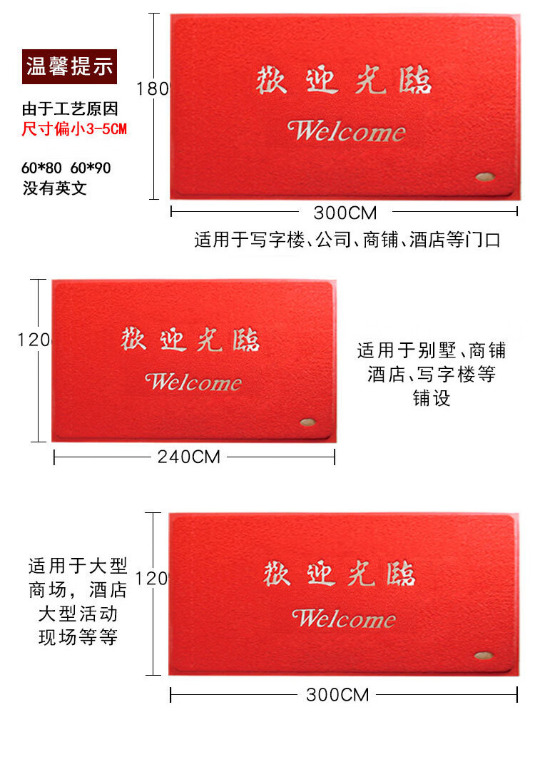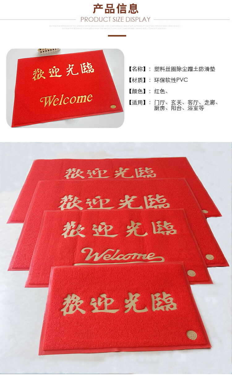 海斯迪克 脚垫 gnxy-378 PVC 欢迎光临 厚1.5mm 120*180cm 1块