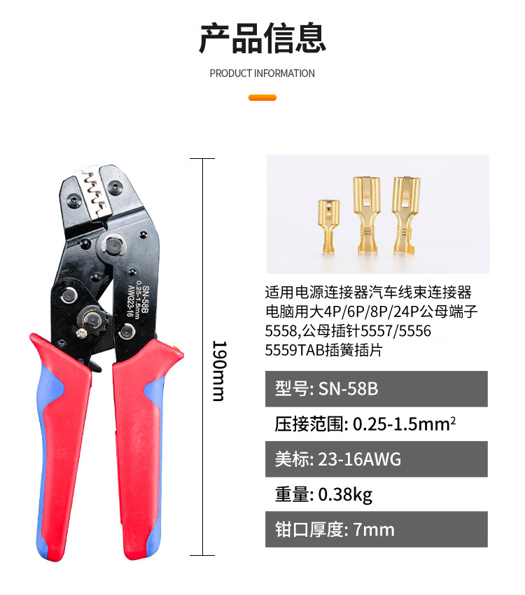 海斯迪克 杜邦端子压线钳 gnxy-429 SN-58B压线钳0.25-1.5平方 1个